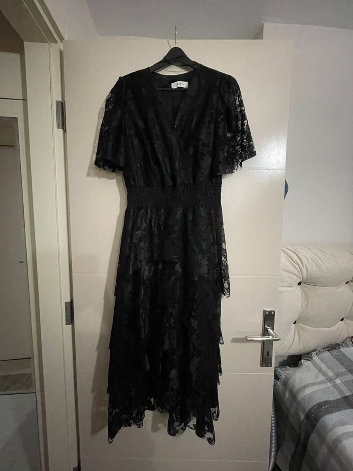 Nişanımda bir kere giydim,beli lastikli dökümlü gustonun en popüler elbiselerinden M beden yazıyor ama 44 bedenken giymiştim.