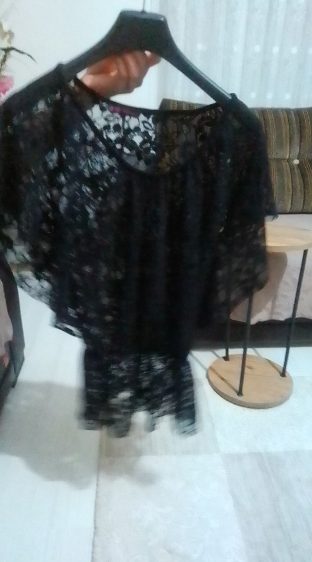 Siyah Dantel Kısa Kollu Mini Bluz