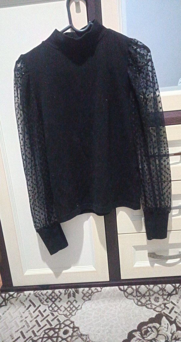 Siyah Dantel Kollu Boğazlı Kadın Bluz