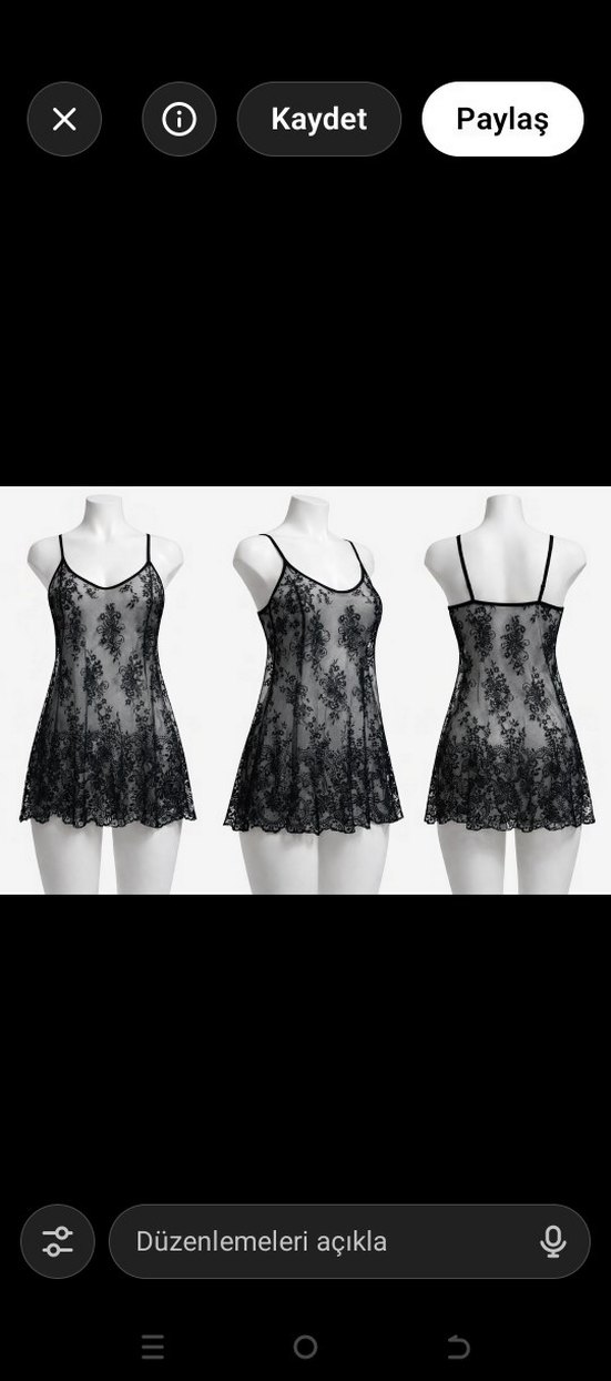 İnce askılı, çiçek desenli siyah dantel kumaştan yapılmış, gecelik.