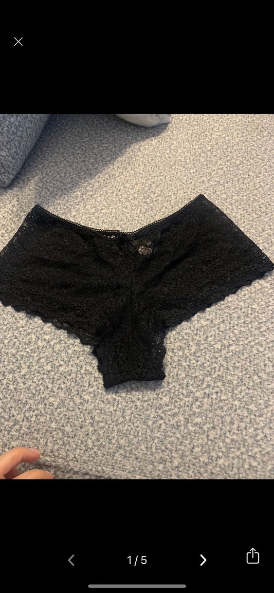 Siyah dantelden mini kadın külot, kısa boylu ve rahat dokusuyla cozy goth tarzını yansıtıyor.