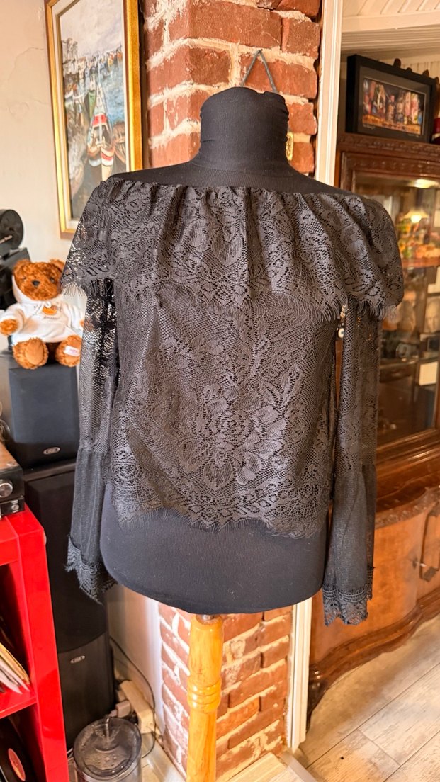 Siyah Dantel Straplez Uzun Kollu Mini Bluz