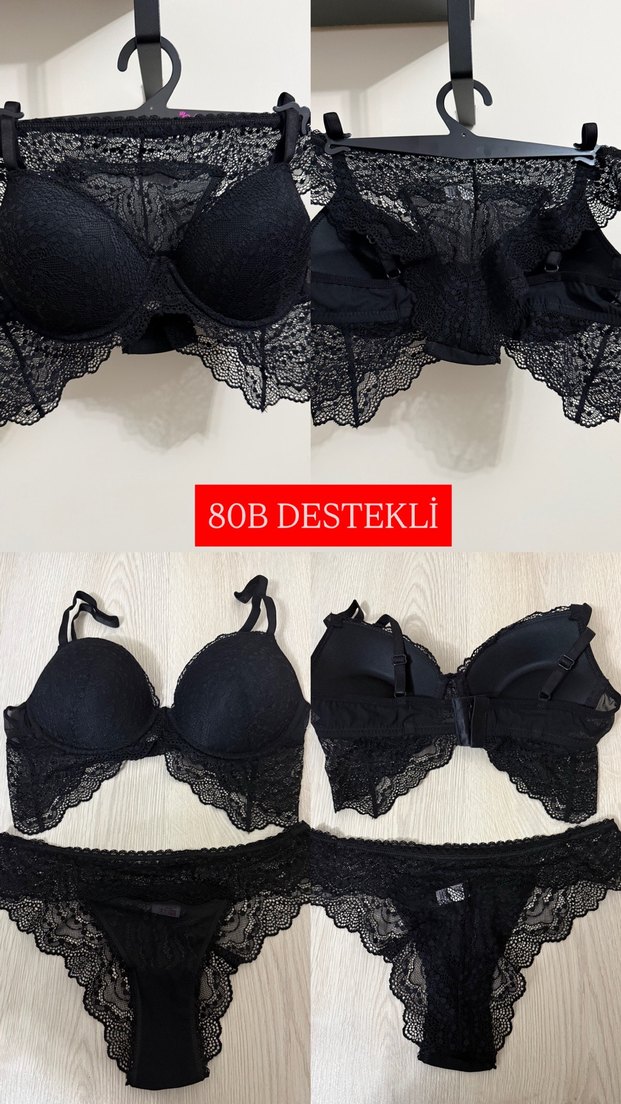 Destekli 80B kaplı siyah dantel sütyen takımı, şık ve rahat bir tercih. Sıfır etiketli ürün.