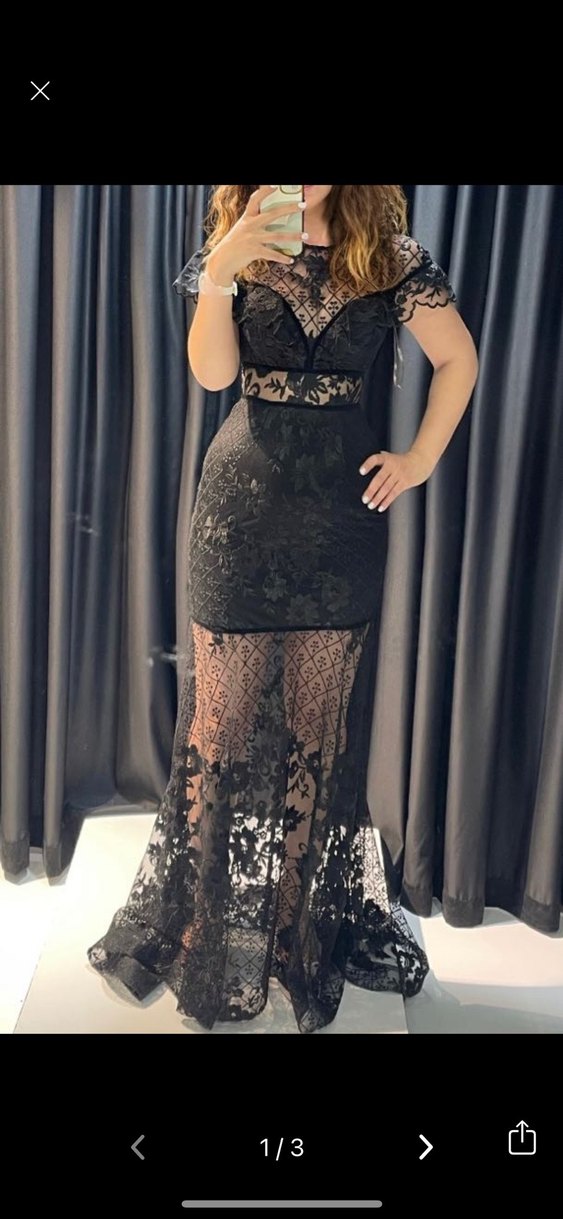 Bu siyah dantel uzun elbise, desenli yapısı, kesimiyle cesur gotik tarzı yansıtır, romantik akşamlar için uygundur. Yeni etiketlidir.