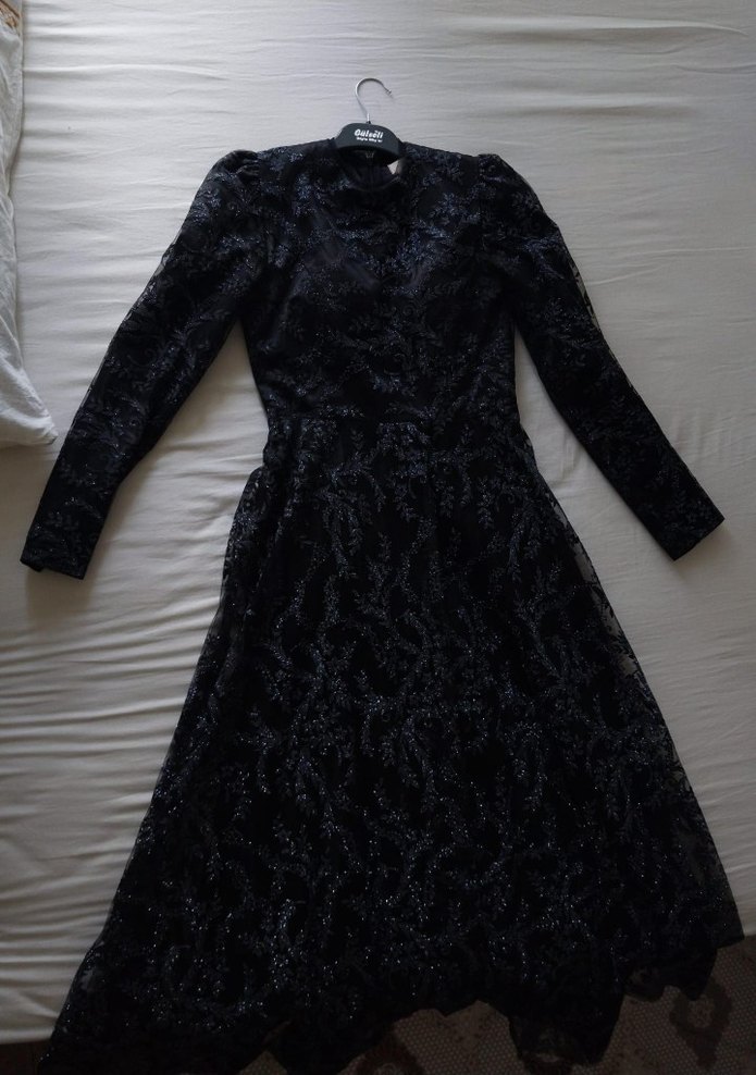 Siyah Dantel Uzun Kollu Gotik Abiye Elbise