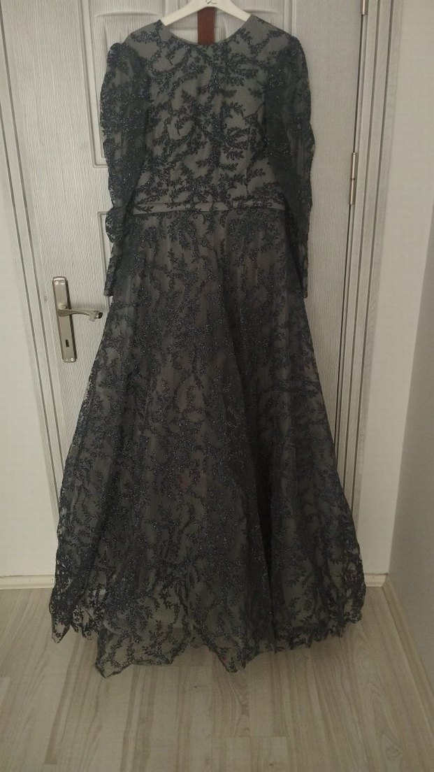 Siyah Dantel Uzun Kollu Gotik Abiye Elbise