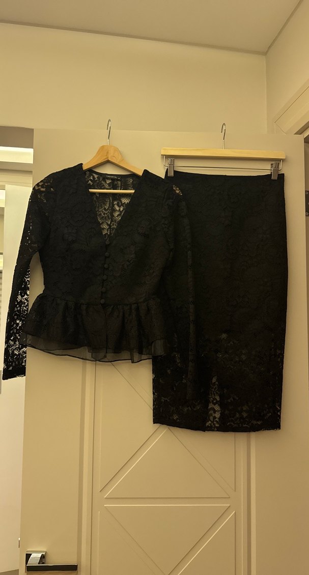 Siyah dantel kumaştan, uzun kollu ve vücuda oturan midi takım.Dar kalıp esnemiyor kumaş dantel olduğu için o yüzden 34 beden giyen birine de uyabilir.