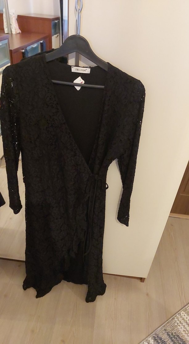 Siyah, dantelli uzun kollu ve V yakalı gotik tarzda, uzun kesim ve dar kesim elbise. Romantik akşamlar için uygun.