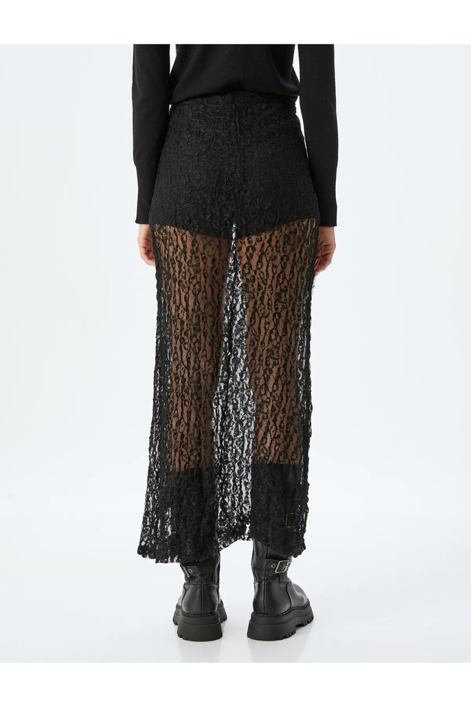 XS-S beden. Siyah dantel kumaştan yapılmış, bol kesim uzun gotik etek