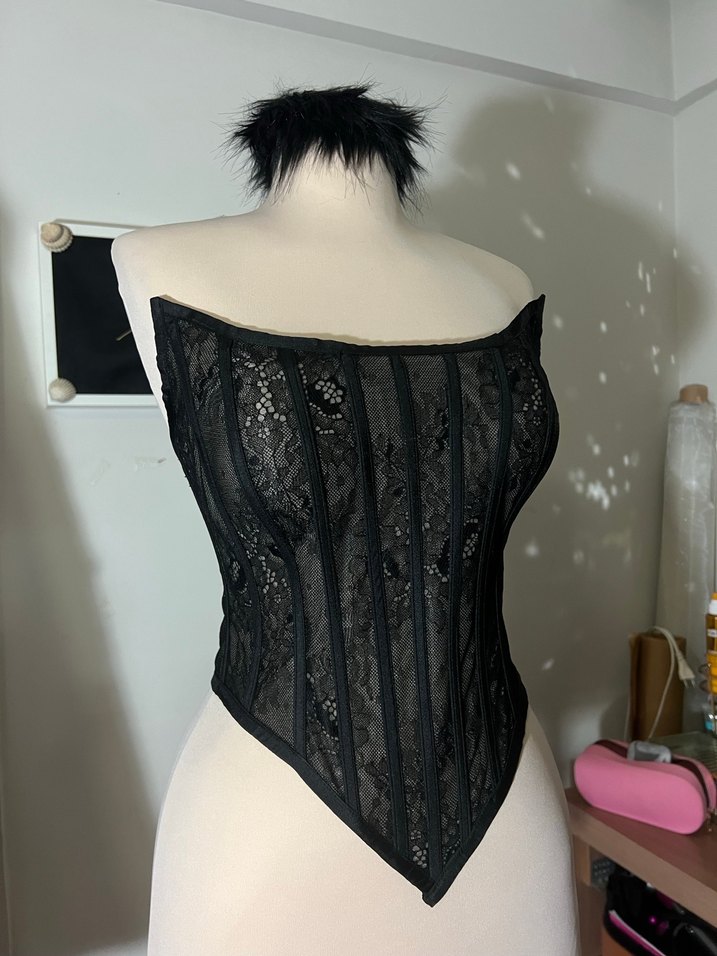 Siyah dantel detaylı, kesukulagi yakalı ve vücuda oturan v korse Kisiye ozel dikimdir 36-38 uyumludur ölçünüze göre renkleri dikilir