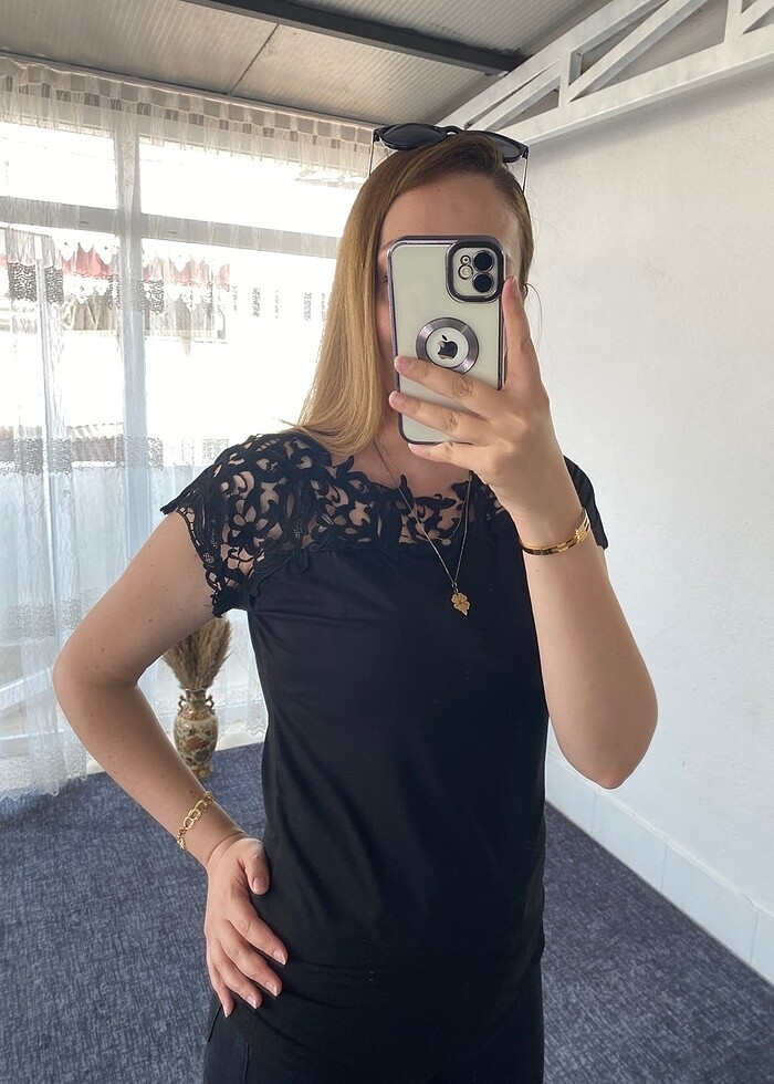 Siyah dantel yaka