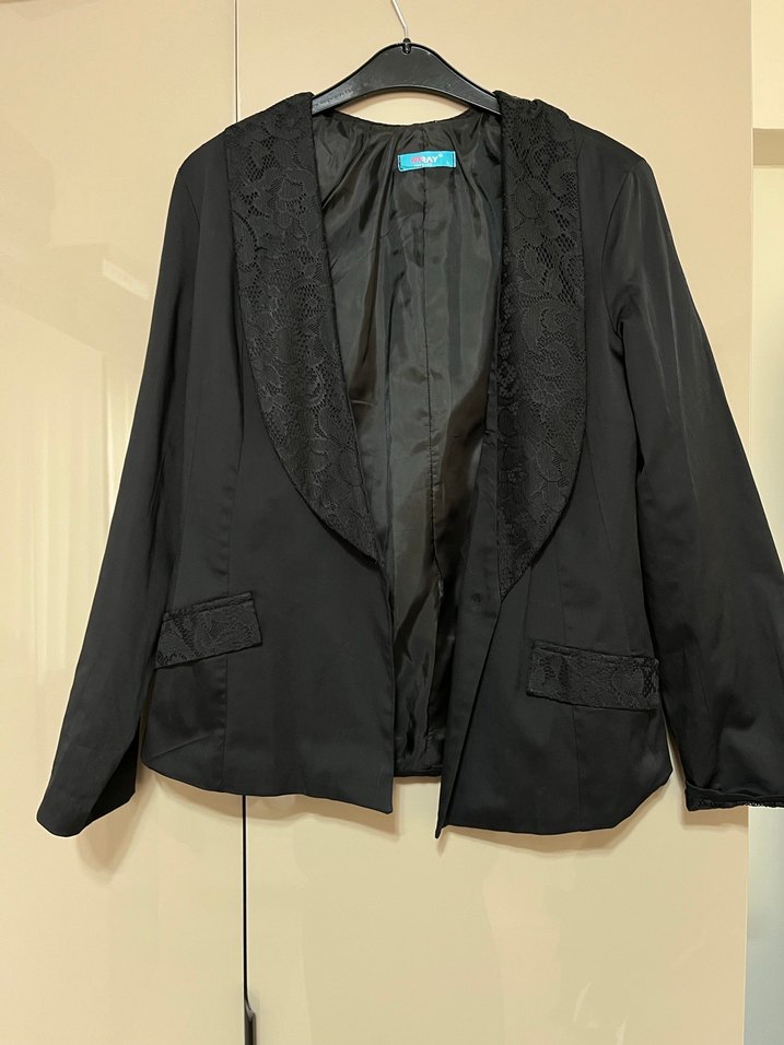 Siyah Dantel yakalı Kadın Midi Blazer Ceket
