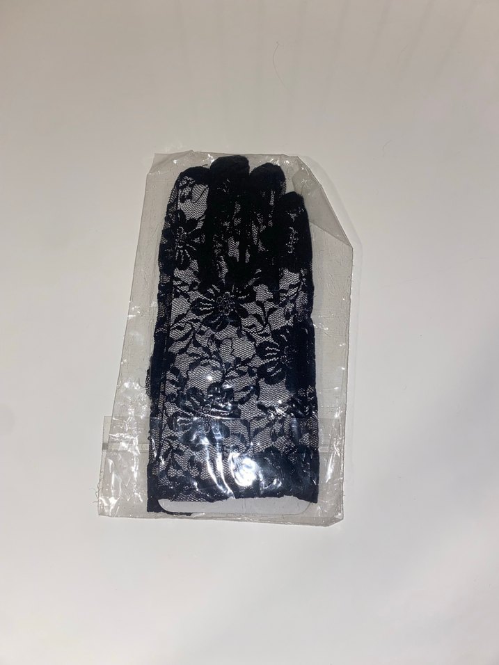 Siyah, dantelli, koyu renkli gotik tarzda kadın eldiveni.