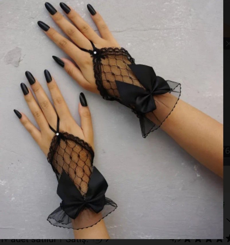 İpek gibi siyah dantel detaylı, fiyonk süslemeli, cesur gotik stile uygun kadın eldiveni.
