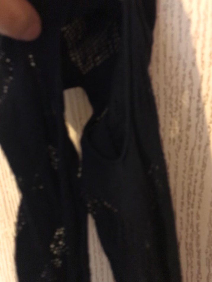 Kullanılmış, ağ kısmı açık olan dantel vücut çorabı