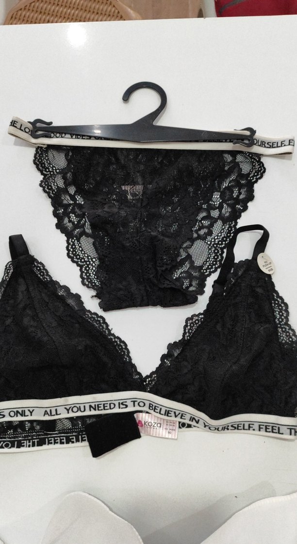Siyah dantelli sütyen külot takımı, gotik tarzda. Üzerinde yazılı elastik bant bulunur. Yumuşak ve rahat kumaş.90 beden son bir adet