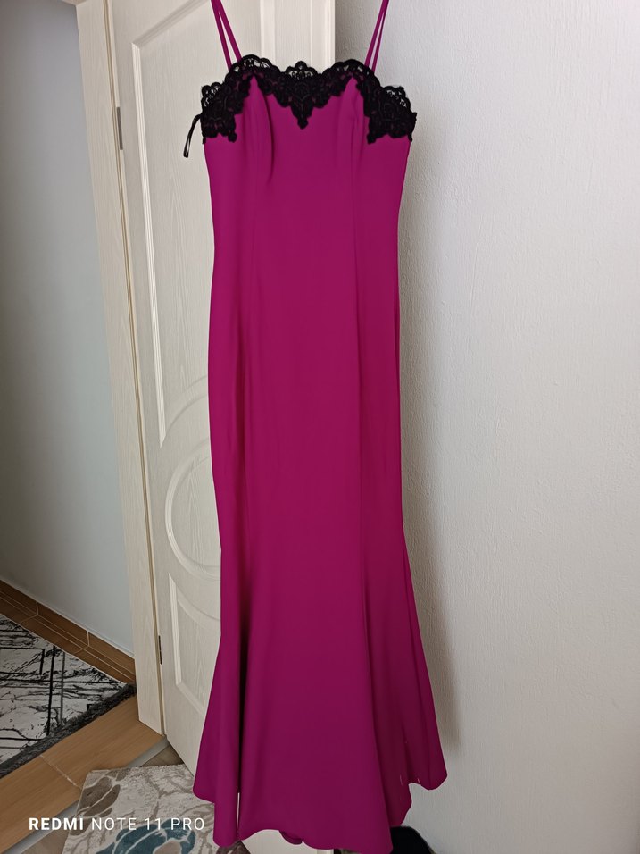 Siyah Dantelli Mor Uzun Abiye Elbise