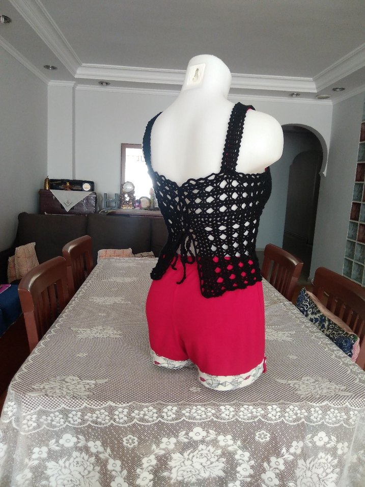 Siyah, dantelli ve örgü kumaştan yapılmış, straplez yakalı ve ince askılı, vücuda oturan gotik tarzda bustiyer.