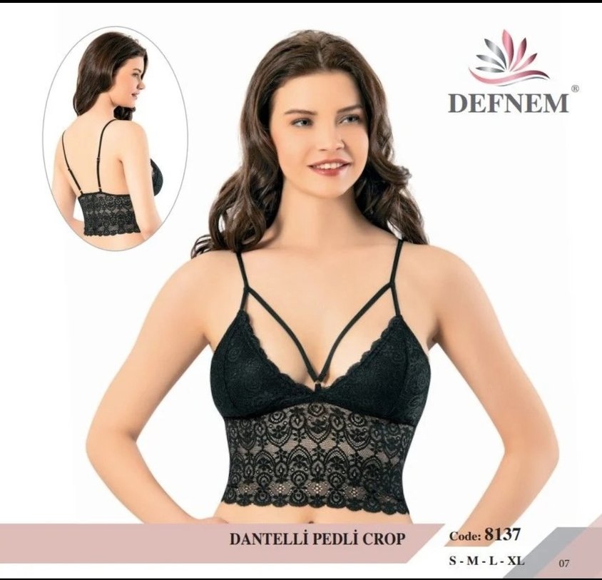 Siyah renkli, kısa kesim ve ince ayarlanabilir askılı gotik dantelli işlemeli crop bralet. S beden.