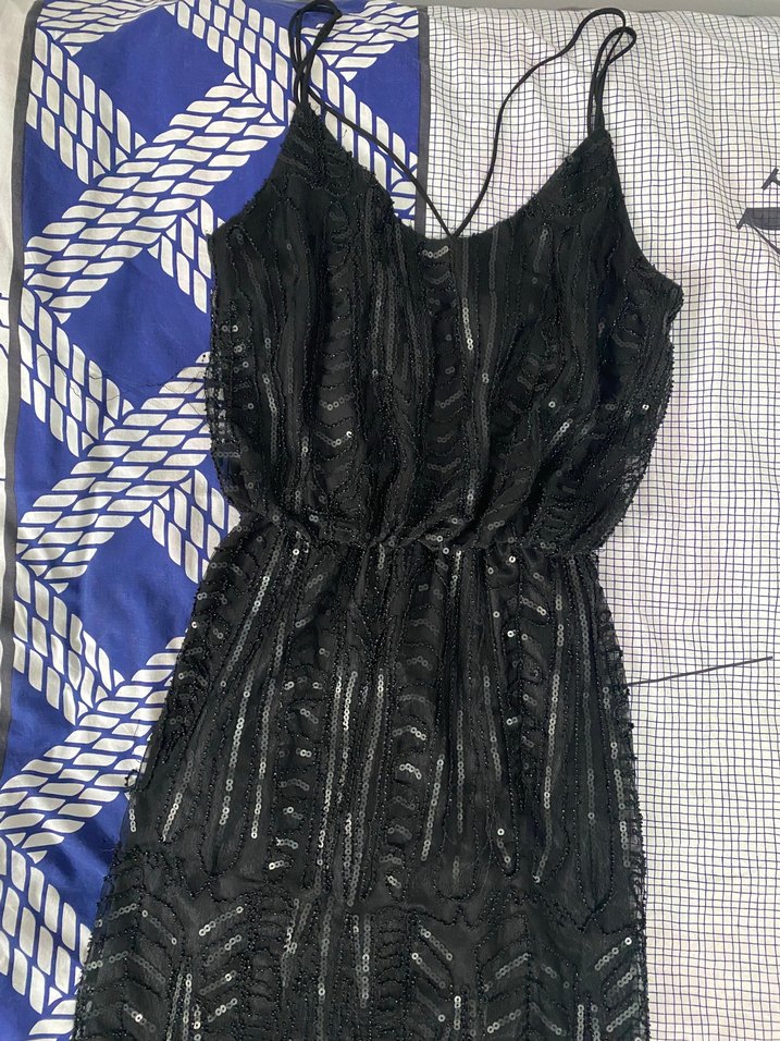 V yaka, dantelli ve işlemeli detaylara sahip, uzun ve askılı siyah abiye elbise. Gotik ve Paris tarzını yansıtan şık bir parça. ✨