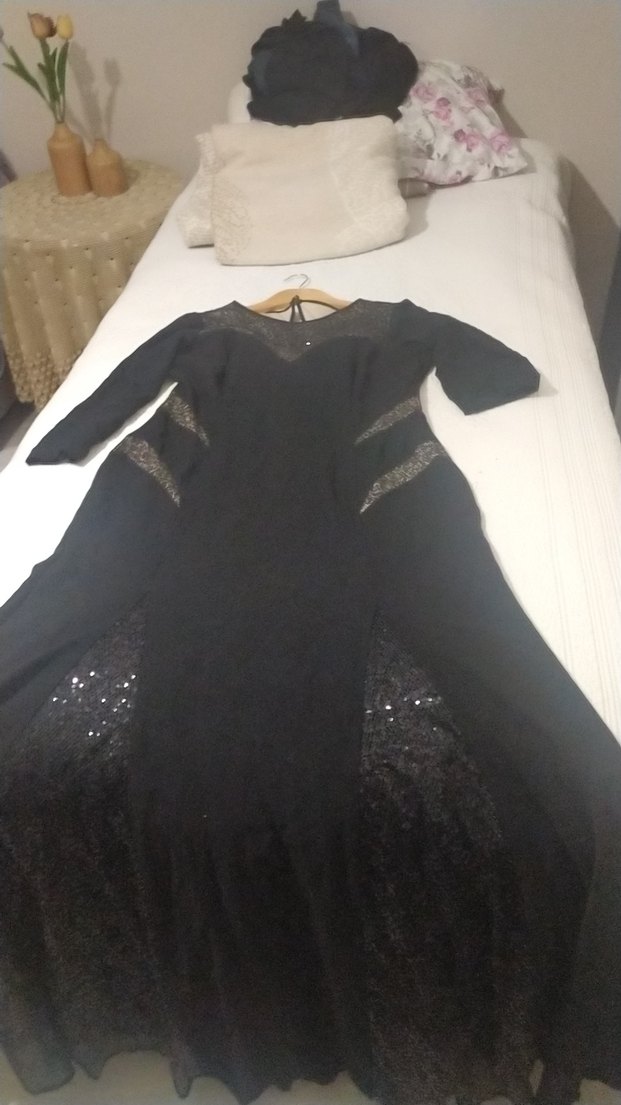 Siyah Dantelli Uzun Kollu Kadın Abiye Elbise