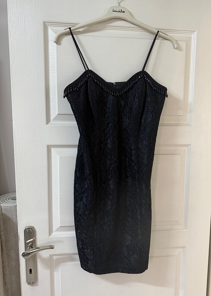 Siyah Dantelli ve Ceketli Mini Abiye Elbise