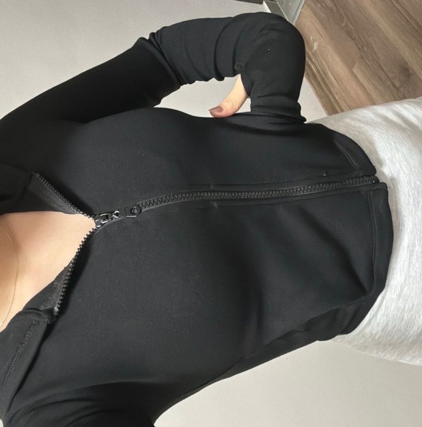 Siyah, uzun kollu ve fermuarlı ceket. Düz ve rahat sentetik kumaştan, günlük sokak stili için uygundur. ✨