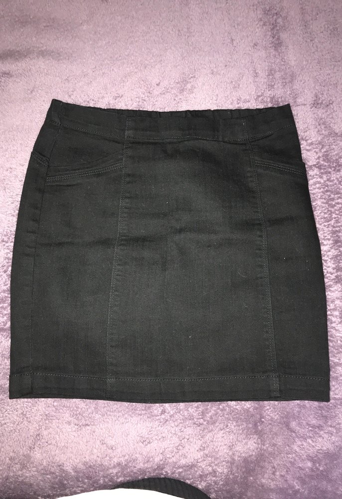 Siyah dar kesim denim mini etek, rahat şıklık sunar. Trendy casual ve gotik tarzlar için romantik buluşmalara uygundur.