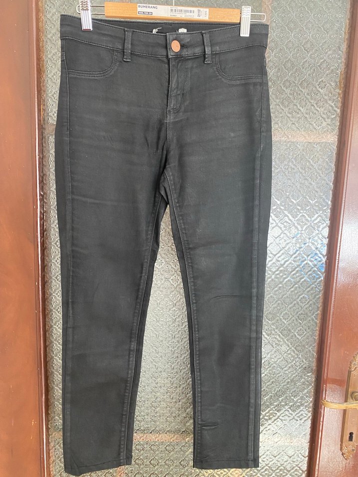 Siyah dar kesim kadın denim pantolon, midi boy ve desensiz tasarımı ile şık ve rahat bir sokak stili sunar. Günlük kullanım için uygundur.
