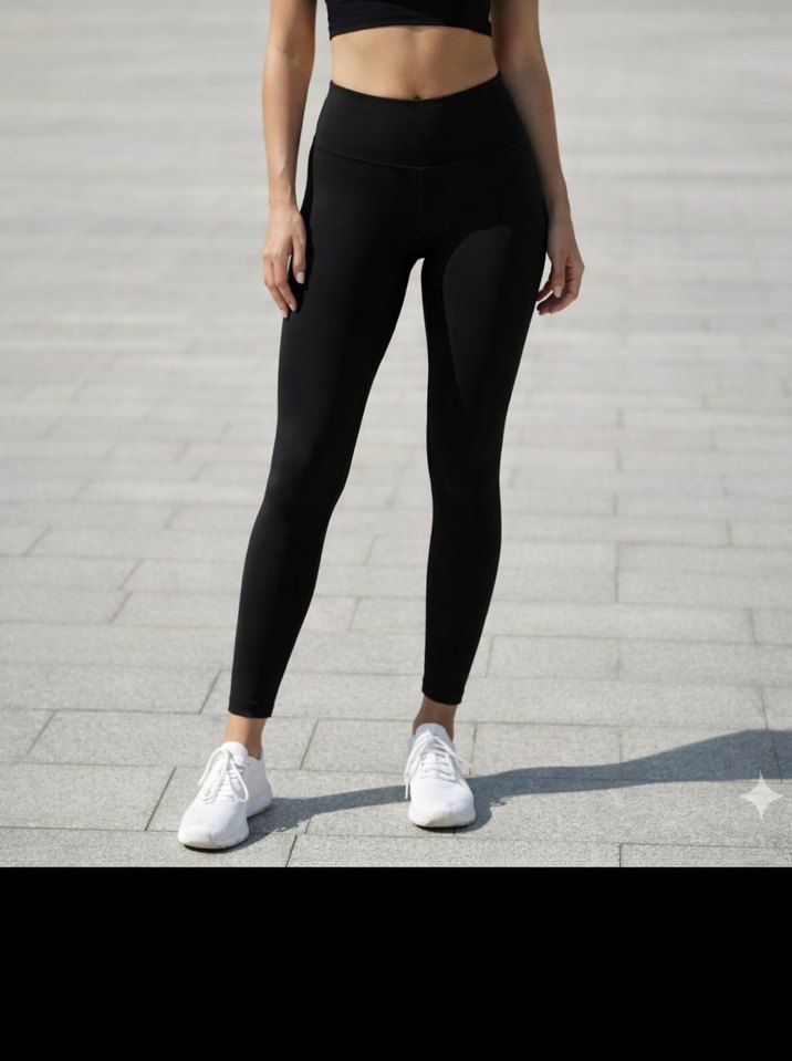 Siyah, dar kesim ve düz tasarımlı kadın spor taytı, rahat sentetik kumaştan üretilmiş, sportif ve günlük kullanıma uygun.