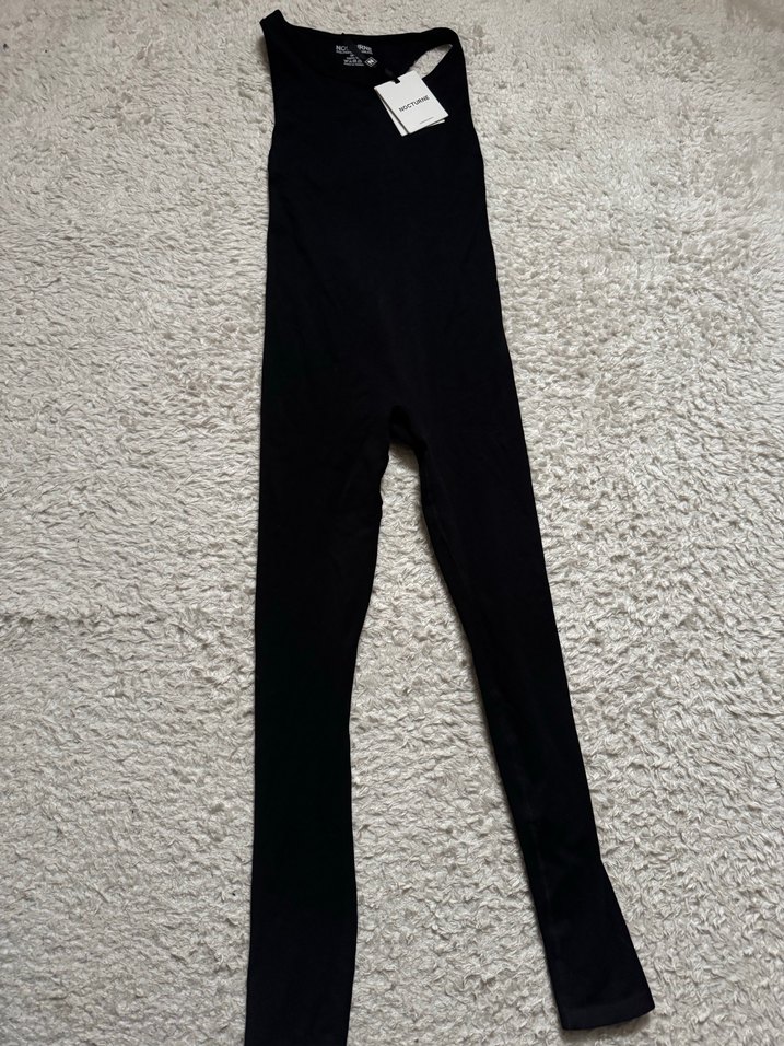 Siyah renkte, dar kesim ve uzun boylu, yumuşak sentetik kumaştan yapılmış kadın tayt. Günlük rahat ve şık sokak stiline uygundur.