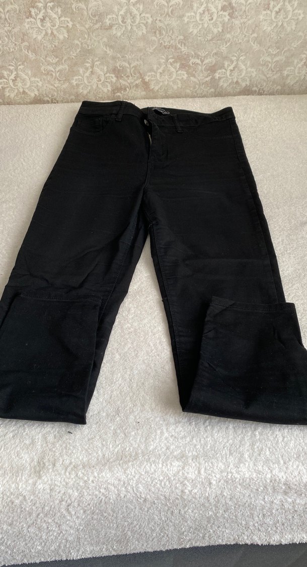 Düz siyah, sentetik kumaştan yapılmış, rahat günlük kullanıma uygun dar kesim midi boy kadın jean. Sokak stiline uygun zahmetsiz şıklık sunar.