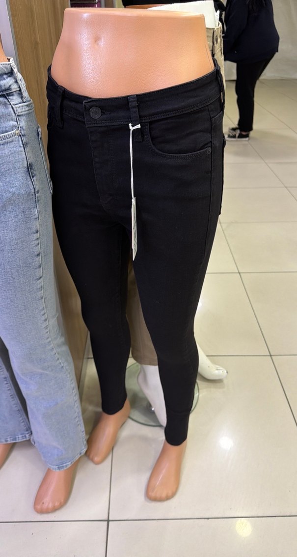 Diz altı boyda, siyah dar kesim kot pantolon. Günlük kullanıma uygun, desen içermeyen rahat ve şık bir sokak stili sunar.