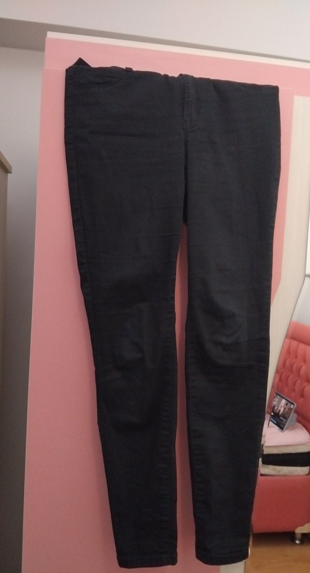 Bu siyah dar kesim kot pantolon, midi boy ve desensiz tasarımıyla günlük sokak modasına uygun, rahat ve şık bir seçimdir.