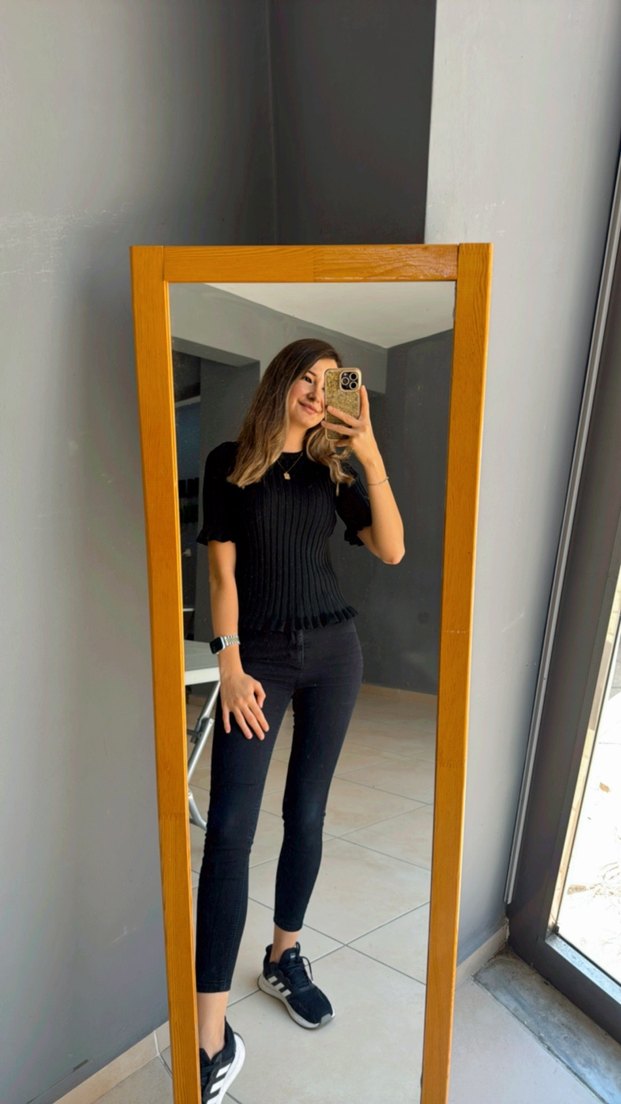 Siyah, dar kesim ve midi boy kot pantolon, günlük kullanıma uygun koyu renkte ve desensizdir. Rahat ve şık bir görünüm sunar.