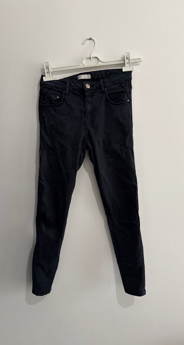 Siyah dar kesim midi kot pantolon, gündelik sokak stiline uygun rahat ve şık bir görünüm sunar.