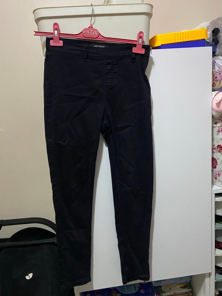 Siyah renkte, dar kesim midi boy kadın pantolon, rahat sentetik kumaştan. Günlük ve şık sokak stili için uygundur.