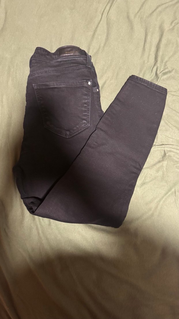 Siyah dar kesim kot pantolon, midi boyda ve desen içermeyen sade tasarımıyla günlük sokak stiline uygun rahat bir şıklık sunar. 1 defa kullanıldı