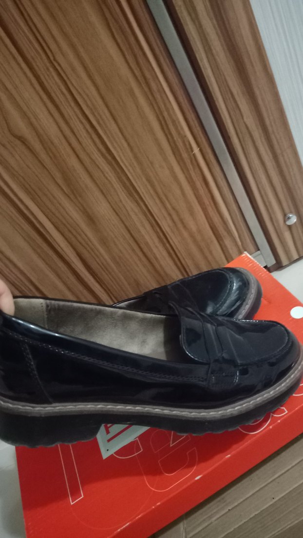 Siyah, tokalı, blok topuklu kadın klasik ayakkabılar. Kauçuk malzemeden, günlük sokak stiline uygun. 38 numara rugan kaliteli marka ağır ayakkabı.