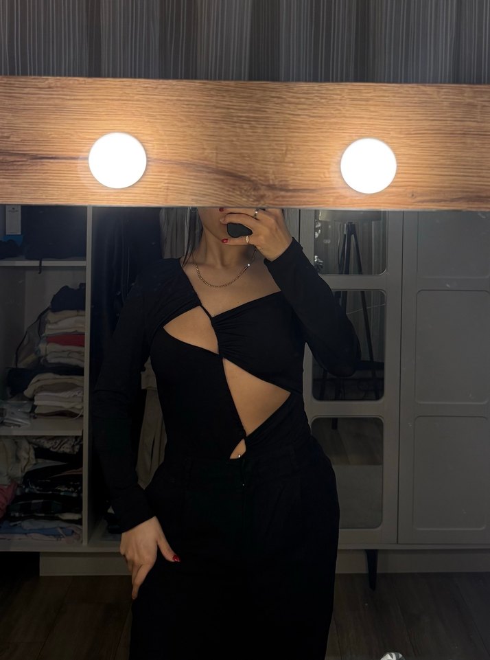 Siyah pencereli bodysuit
