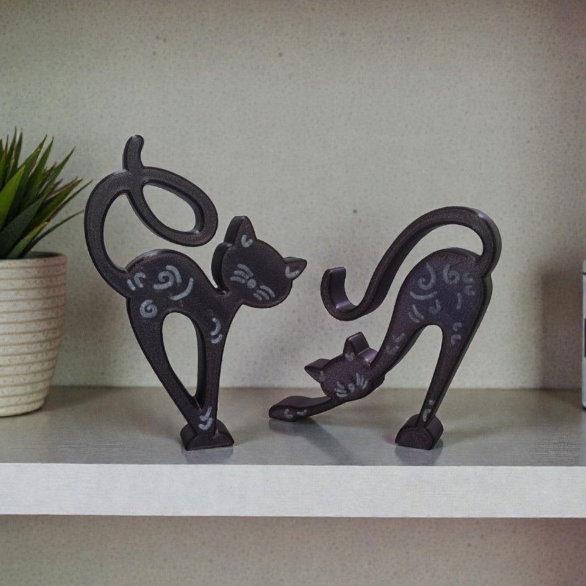 Siyah, kıvrımlı şekillere ve dekoratif desenlere sahip kedi figürleri, ev dekorasyonu için uygun. Ölçüleri 16cm ve 14 cm ikili fiyatıdır. Satın almak isterseniz msj yazmanız yeterli sizin için yeni ilan açarım