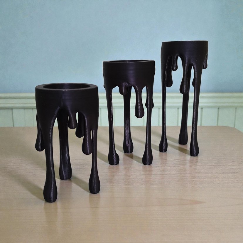 Siyah, damlayan tasarıma sahip dekoratif mumluk seti, mekana özgünlük katıyor. ️ Ölçüleri 14cm 12 cm ve 10 cm dir. 3'lü set fiyatıdır lütfen satın almak isterseniz msj yazmanız yeterli sizin için yeni bir ilan açarım