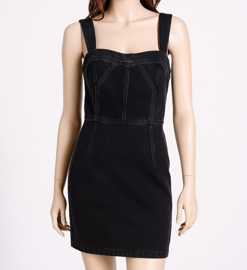 Siyah denim askılı, günlük sokak stili için uygun, dar kesim.