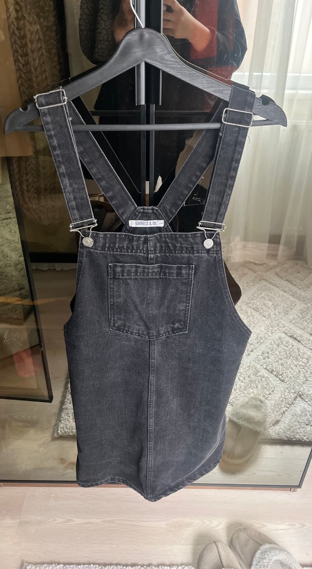 Siyah denim kumaştan, askılı ve tokalı bantlara sahip, midi uzunlukta kısa tulum. Yüksek yakalı, günlük sokak tarzına uygun bir parça. Doğumdan sonra kilo aldığım için olmuyor kot tok bir kumaşı var çok rahat.