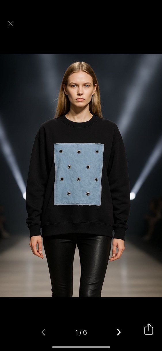 Siyah renkli, uzun kollu ve bisiklet yaka sweatshirt. Önünde metal halka detaylı denim baskı bulunur. Rahat ve salaş kesimli, günlük kullanıma uygun. kol altı 58 cm boy65 cm s m l beden uygundur koleksiyon ürünüdür tektir