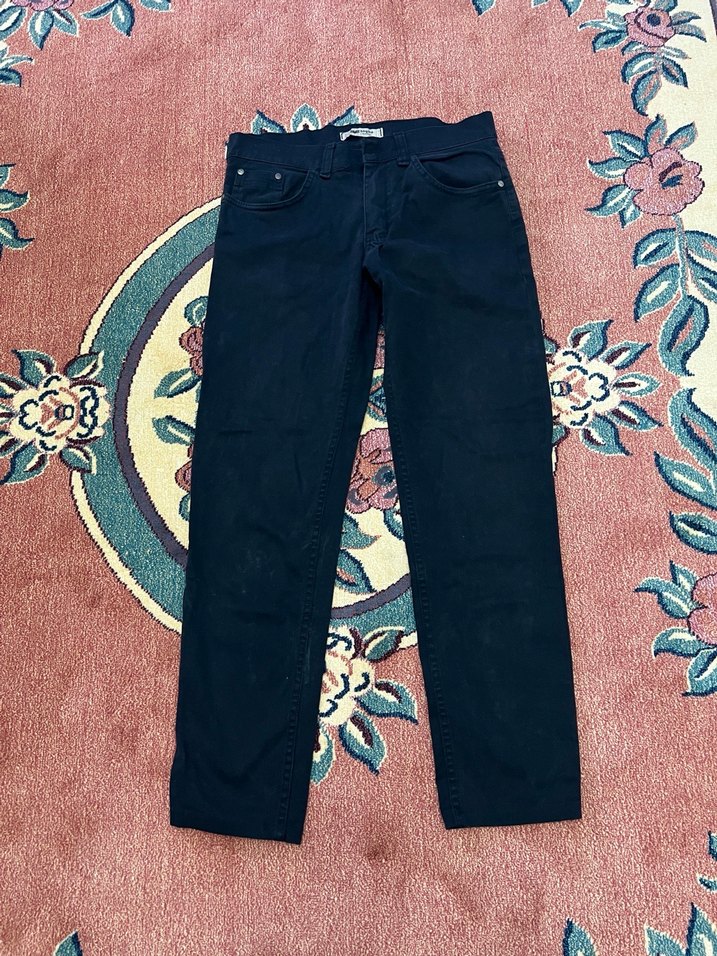 Siyah renkte, regular fit kesim, fermuarlı ve erkek kot pantolon, günlük kullanıma uygundur.ufak bir lekesi var