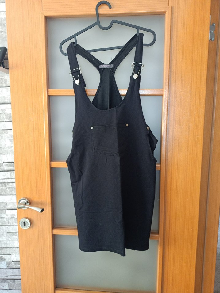 Siyah Denim Midi Kısa Tulum
