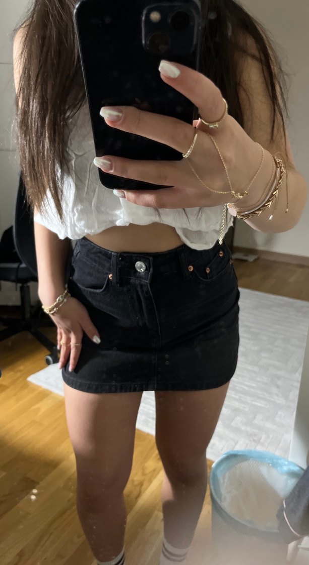 Siyah Denim Mini Etek
