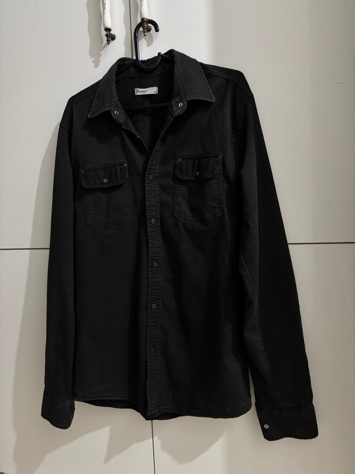 Siyah denim kumaştan, uzun kollu, regular fit erkek gömlek. Önünde düğmeli cep bulunur. Günlük sokak tarzı için uygundur. Kaliteli bir kumaşı var likralı kot gibi