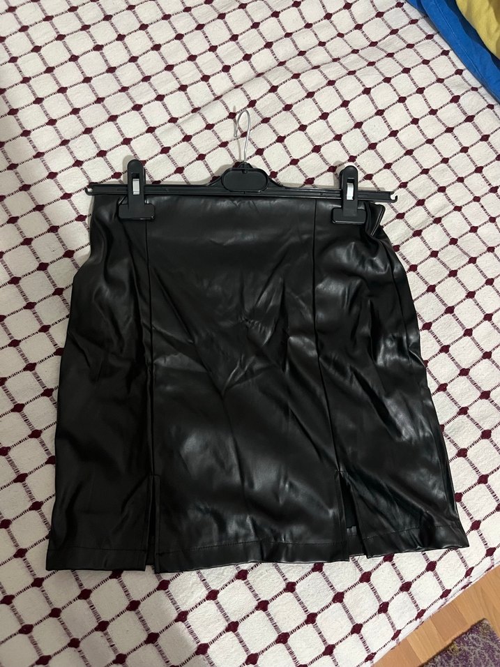 Siyah denim mini etek, volanlı etek ucu ve vücuda oturan kesimiyle günlük kullanıma uygundur. Grunge ve bohem tarzı yansıtır.